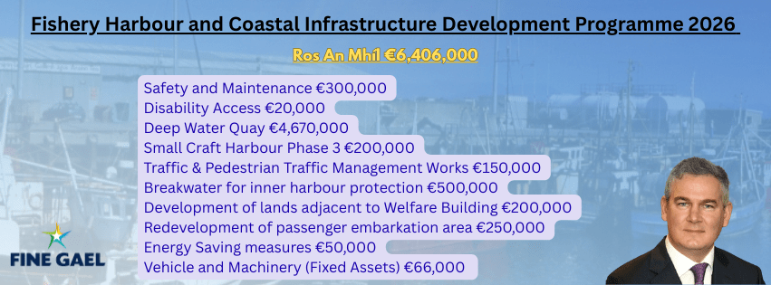 Uncategorized Calafort Ros an Mhil Date: February 16, 2026Author: seankyne 0 Comments Cuirim fáilte roimh mhaoiniú de €6.4m do Chalafort Ros an Mhíl – infheistíocht thábhachtach inár bpobal cósta. Share this: Share on X (Opens in new window) X Share on Facebook (Opens in new window) Facebook Like Loading... Related